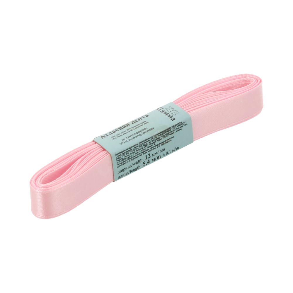 Лента атласная 12 мм ( 1/2 ") "Gamma" ФАСОВКА 5.4 м №067 св-розовый