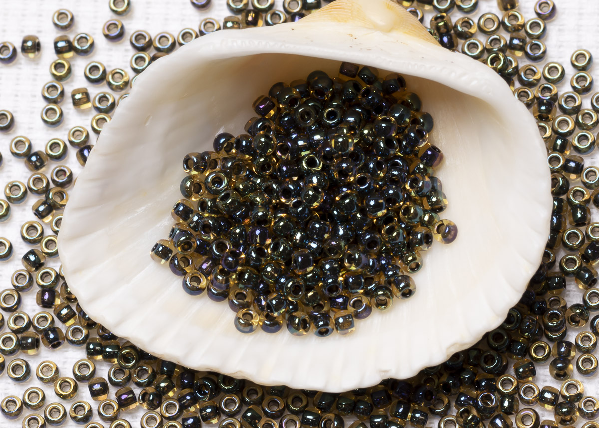 Бисер Япония круглый 11/0 10г 0244 светлый топаз/чёрный радужный, окрашенный изнутри